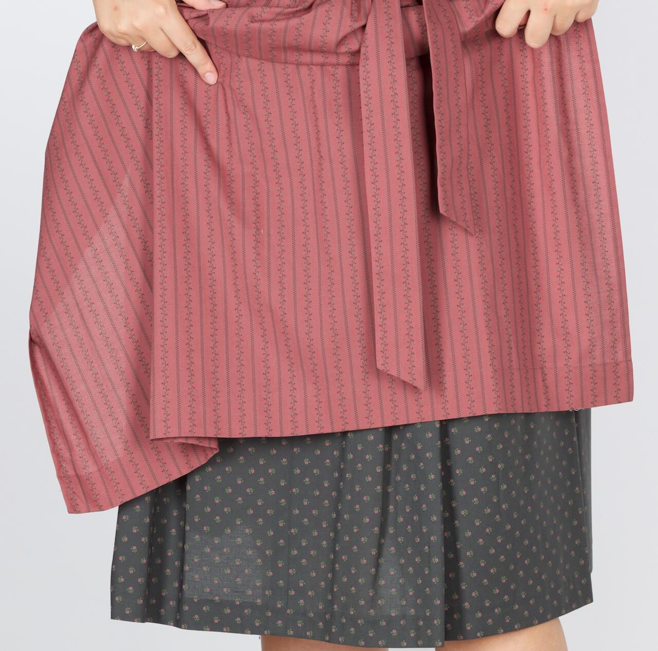 Die altrosa gemusterte Schürze gibt den farblichen Kontrast zum Dirndl.